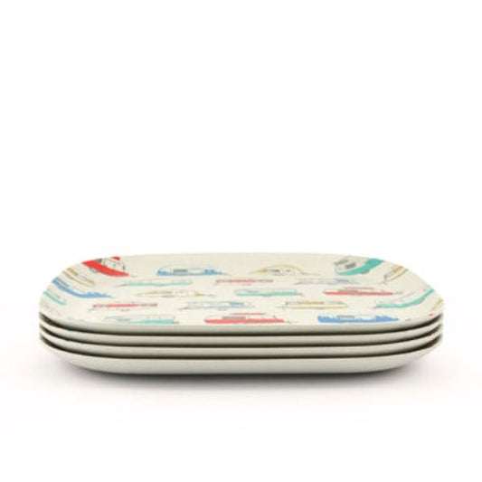 Set of 4 - Camping Bamboo Dinner Plate - Seasonal Caravans Coloured Caravans